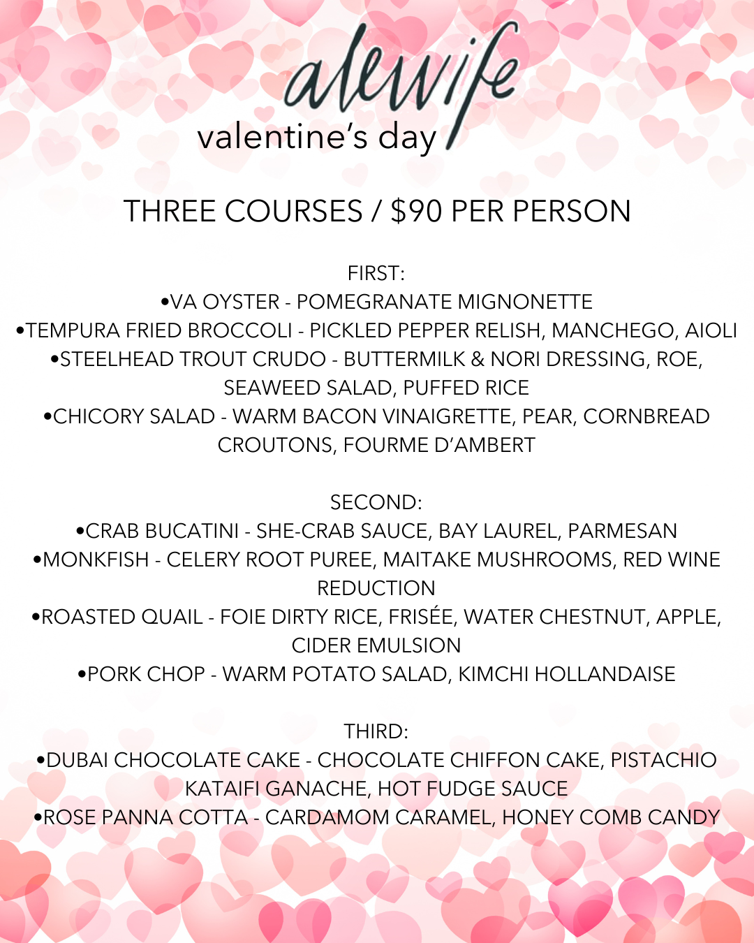 Come Celebrate Valentine’s Day with us! We will be offering a special menu on Friday 2/13 and Saturday 2/14. Taking reservations now!